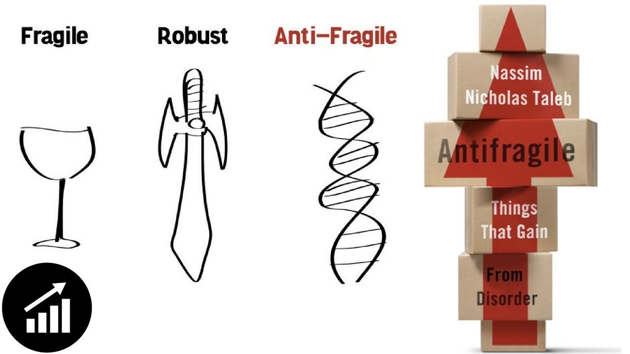 “Some things benefit from shocks; they thrive and grow when exposed to volatility, randomness, disorder, and stressors; and love adventure, risk, and uncertainty. Yet, in spite of the ubiquity of the phenomenon, there is no word for the exact opposite of fragile. Let us call it antifragile.